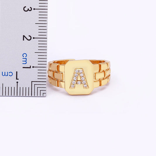 Gold Color Initial Ring Adjustable A-Z Letters Zircon Rings For Women