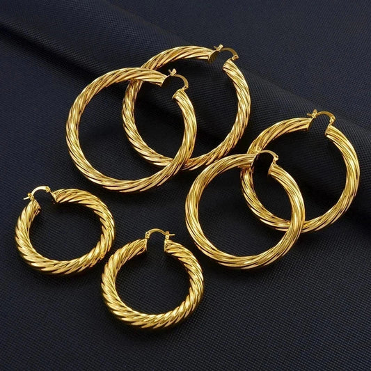 Gold & Silver Plated African Ethiopians Big Earrings 1 Pair of 5CM 6CM 7CM 8CM Women Large Round Brass Twisted Earring