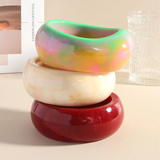 KMVEXO Vintage Punk Colorful Thick Resin Acrylic Smudging Wide Bangles Geometric Irregular Bangle Bracelet