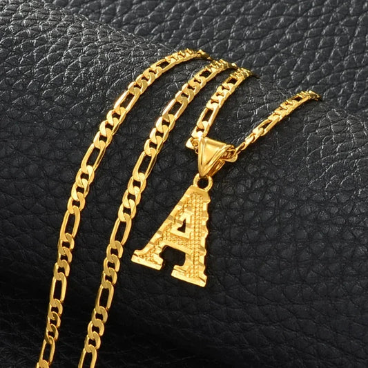 Gold Plated Pendant A-Z Letters Necklaces for Women Men Girls English Initial Alphabet Figaro Chains