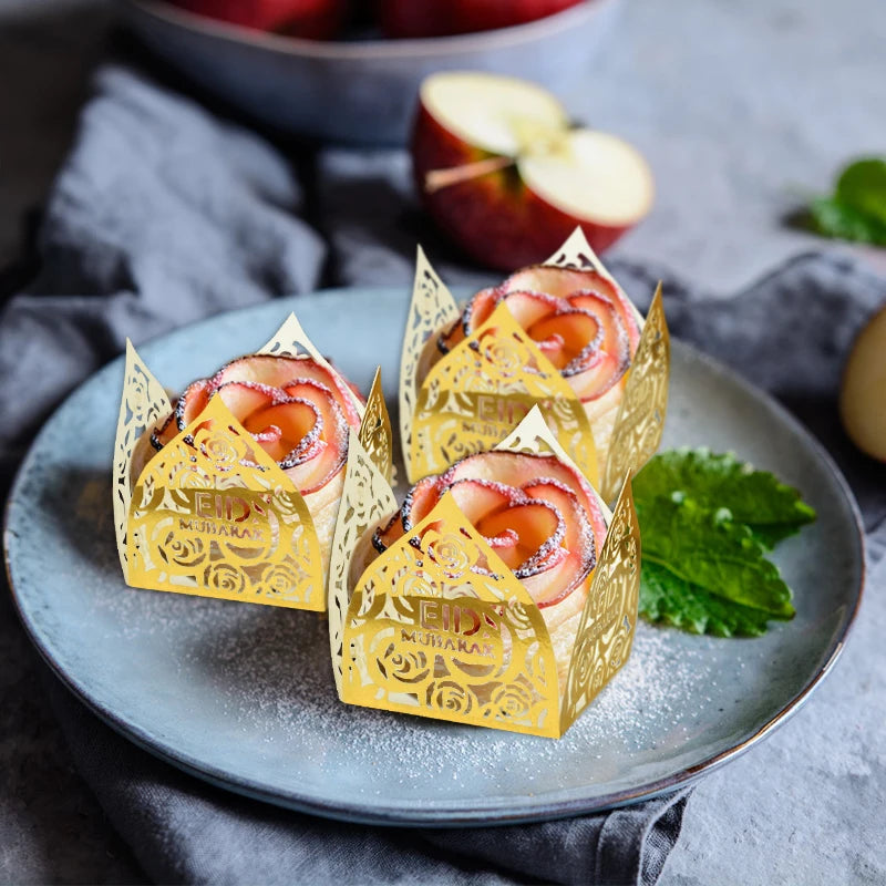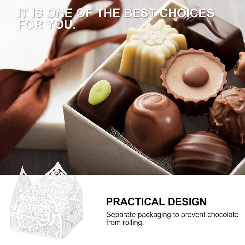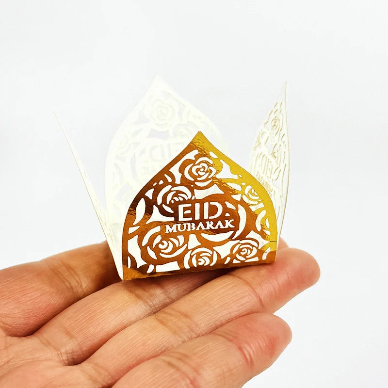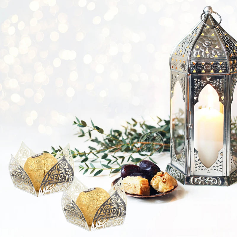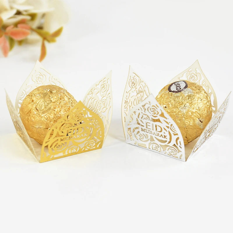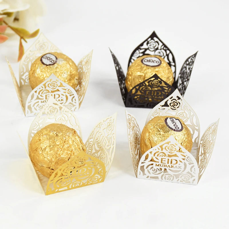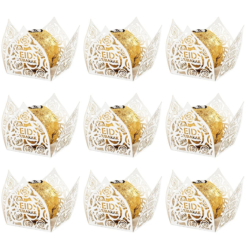 Eid Mubarak Decoration Chocolate Wrappers Paper Candy Enhance your Ramadan celebrations. Available in packs of 10-50, these wrappers add a festive touch to your sweets, making them perfect for your Eid celebrations. Bring joy to your loved ones with this Ramadan Kareem Party Supply.