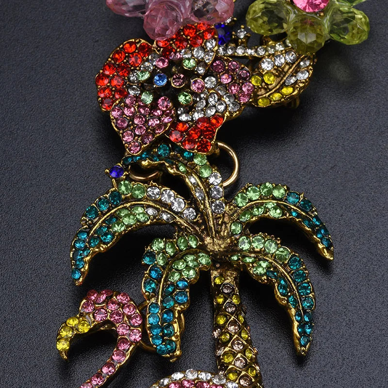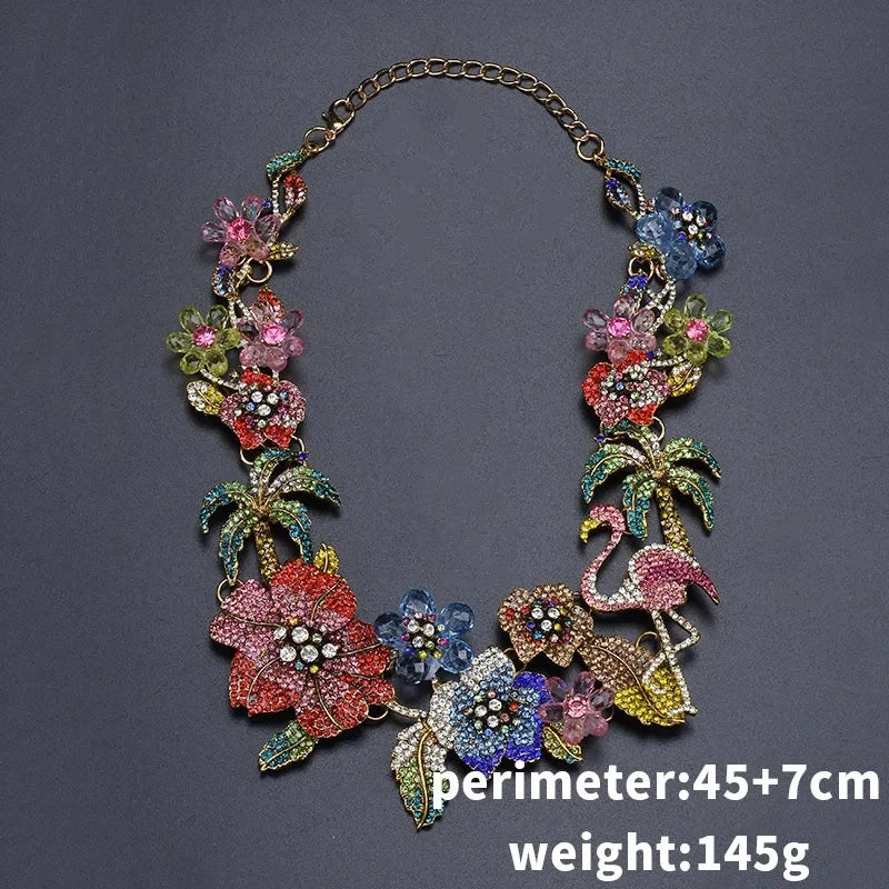 Necklace Colorful Crystal Rhinestone Flower Flamingo Necklace Choker Necklace