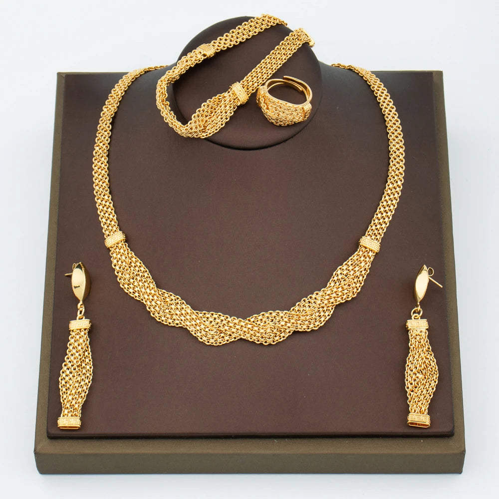 Dubai Gold Jewelry Set: earrings necklace