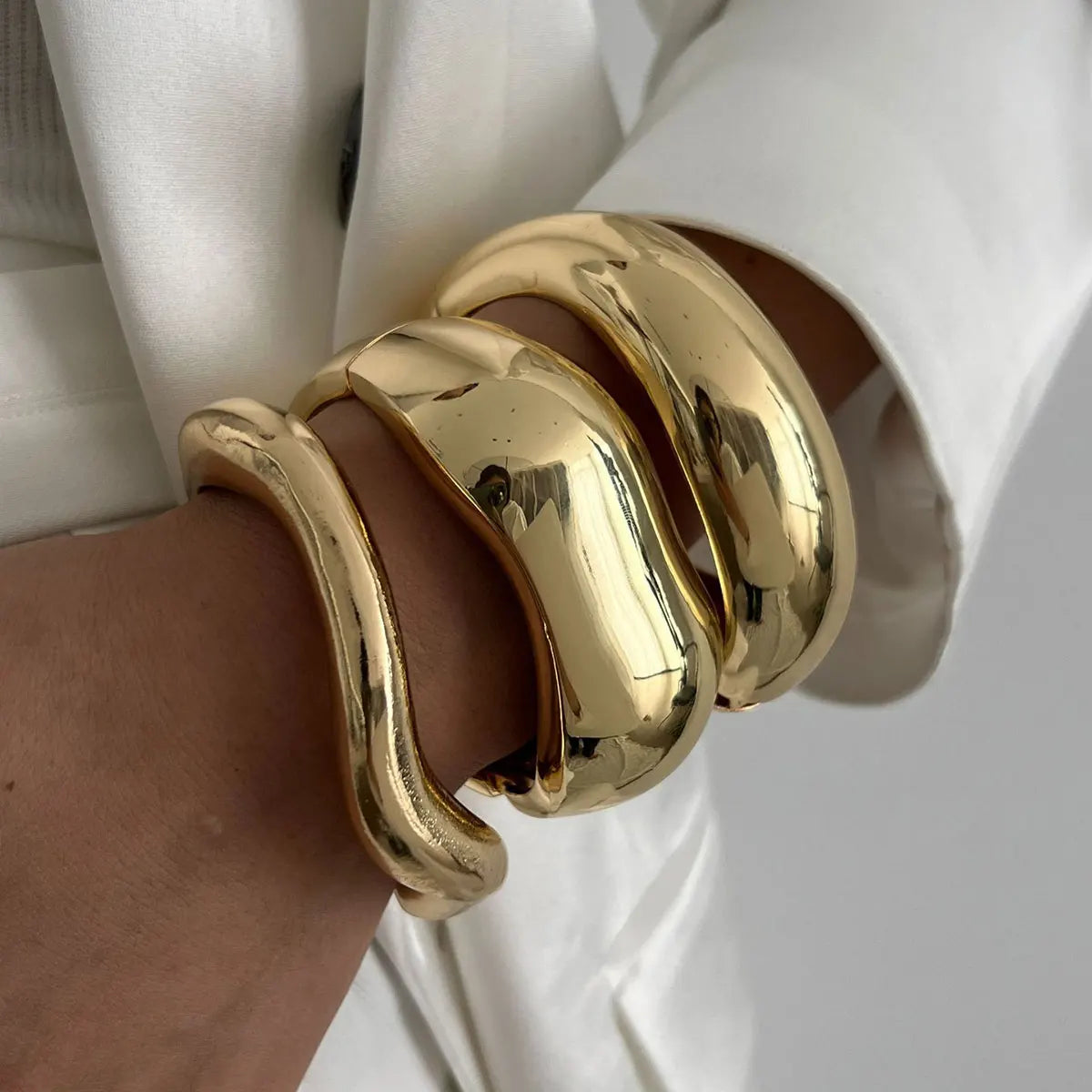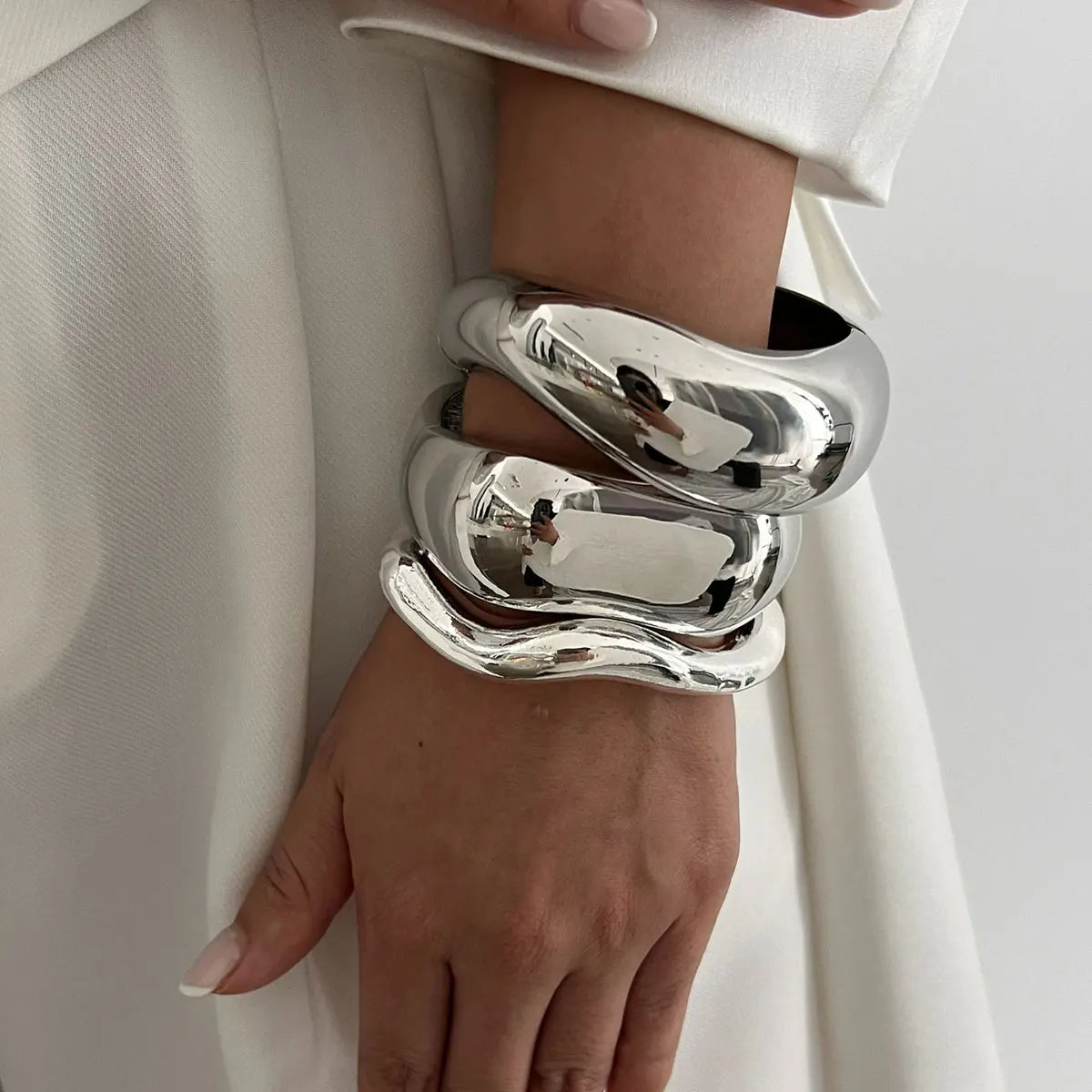 Cuff Bangles from KMVEXO combine vintage style with a punk flair. The irregular and chunky design adds a unique touch to any outfit. Perfect for women who want to make a bold statement with their accessories. Add these bangles to your collection for a touch of edginess.