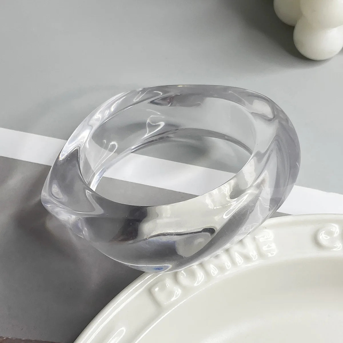 KMVEXO Vintage Punk Brown Coffee Thick Resin Acrylic Bangles Geometric Irregular Wide Cuff Bangle Bracelet