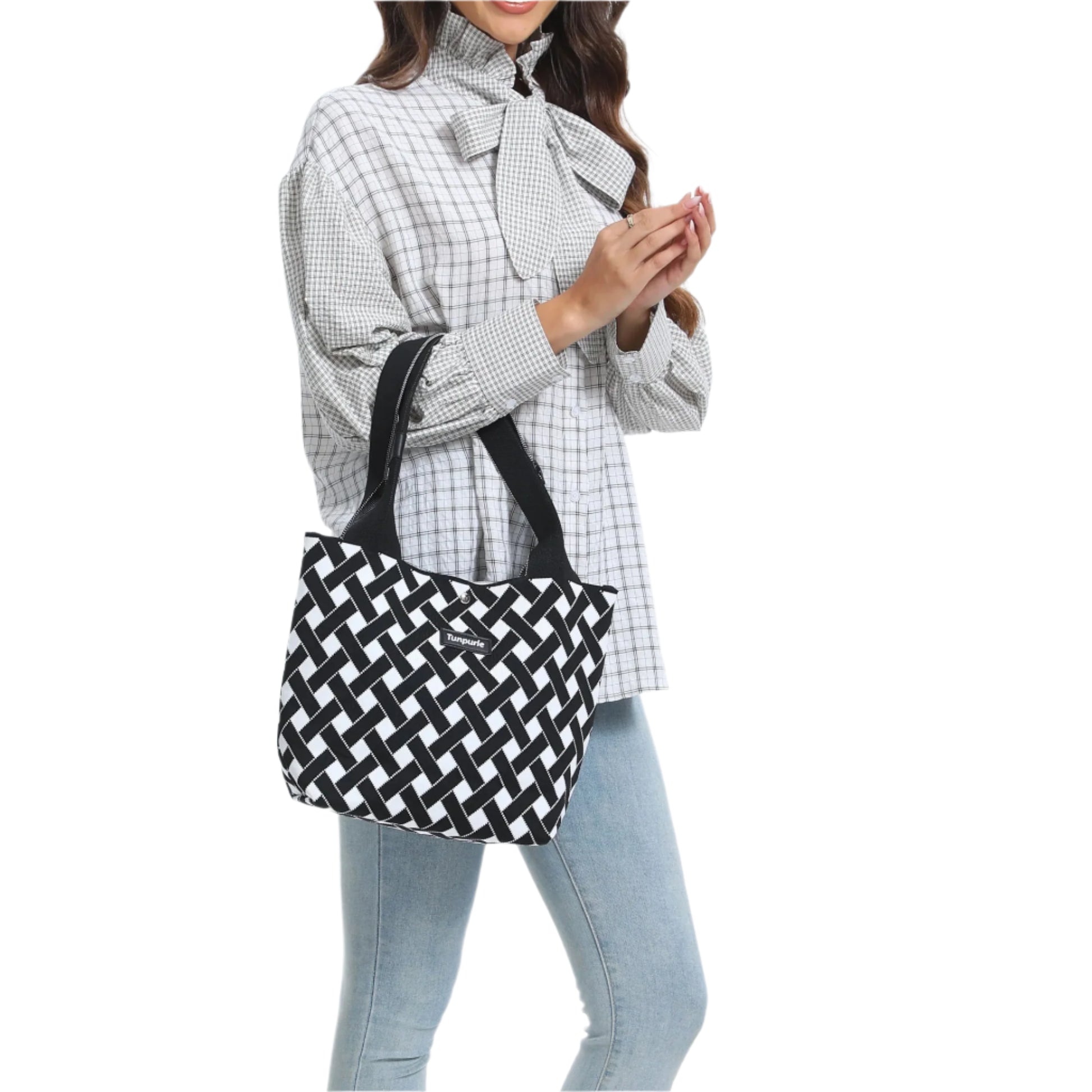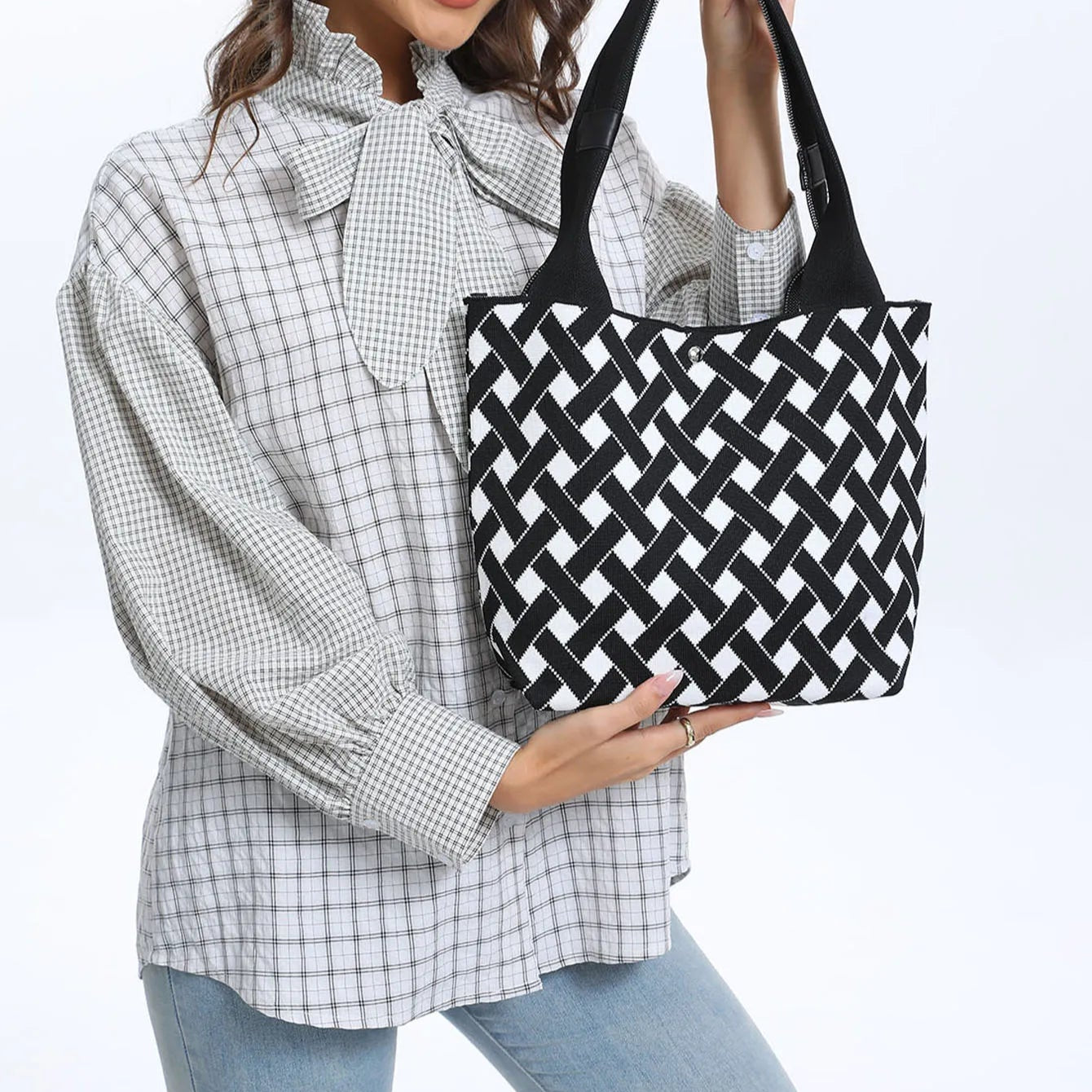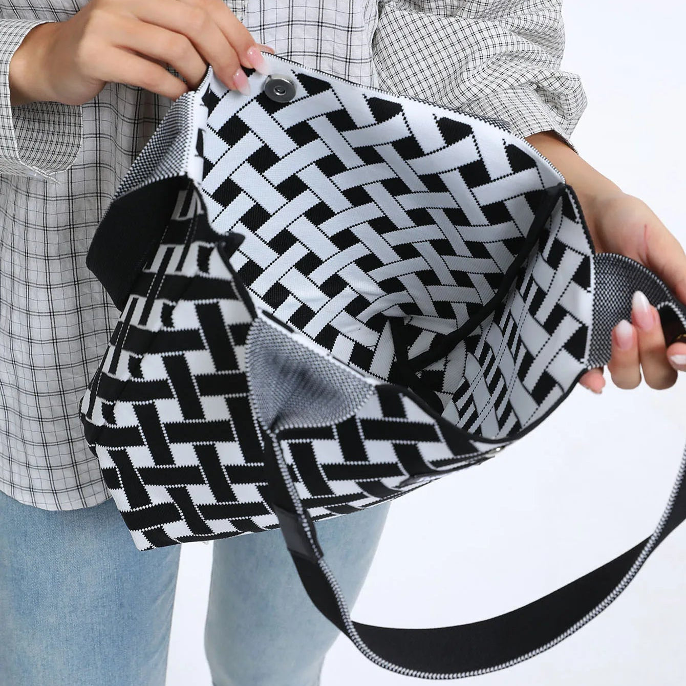 Ladies' classic tote bag include a simple, yet elegant black and white design, making it perfect for casual use or as a white-collar commuting bag. Its specifications are highly suitable for day-to-day activities.