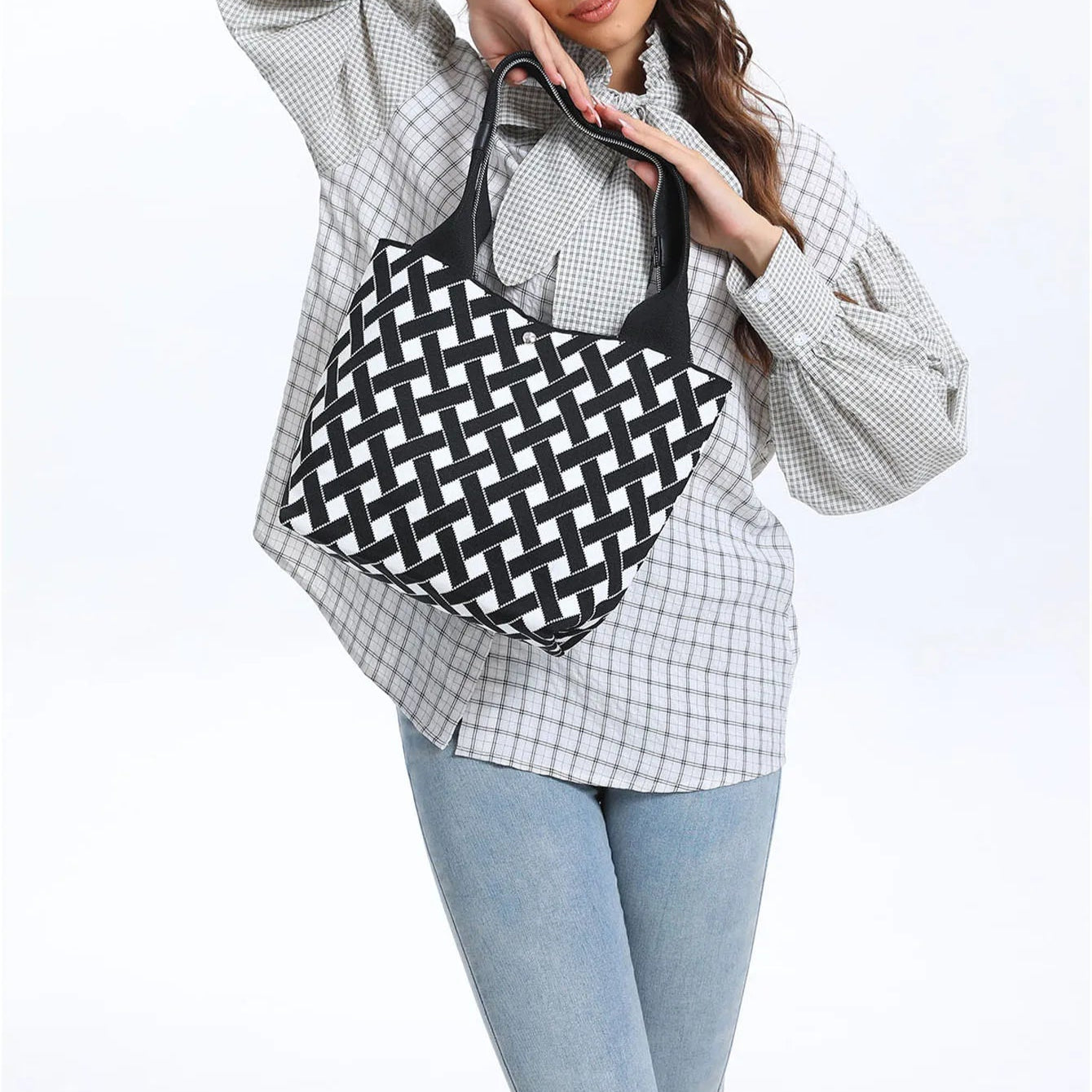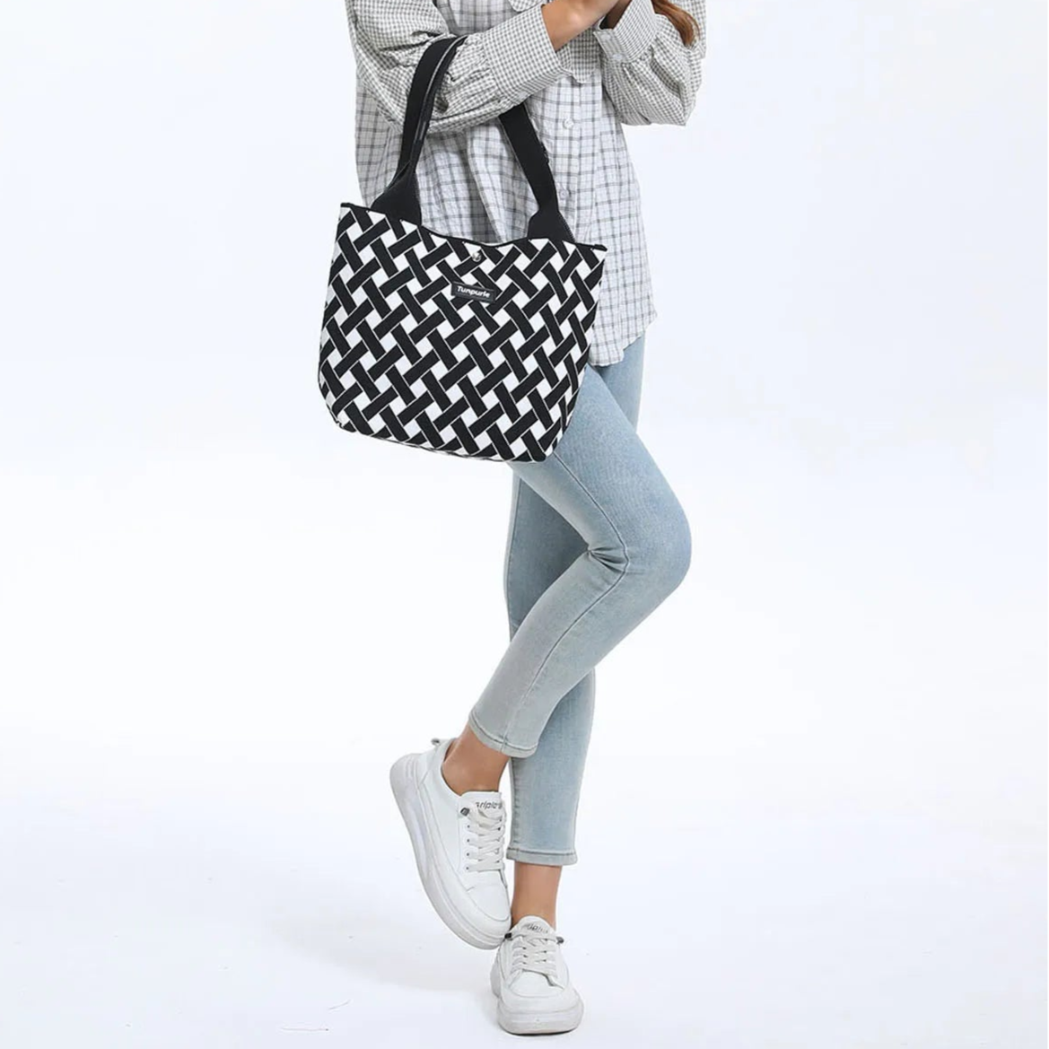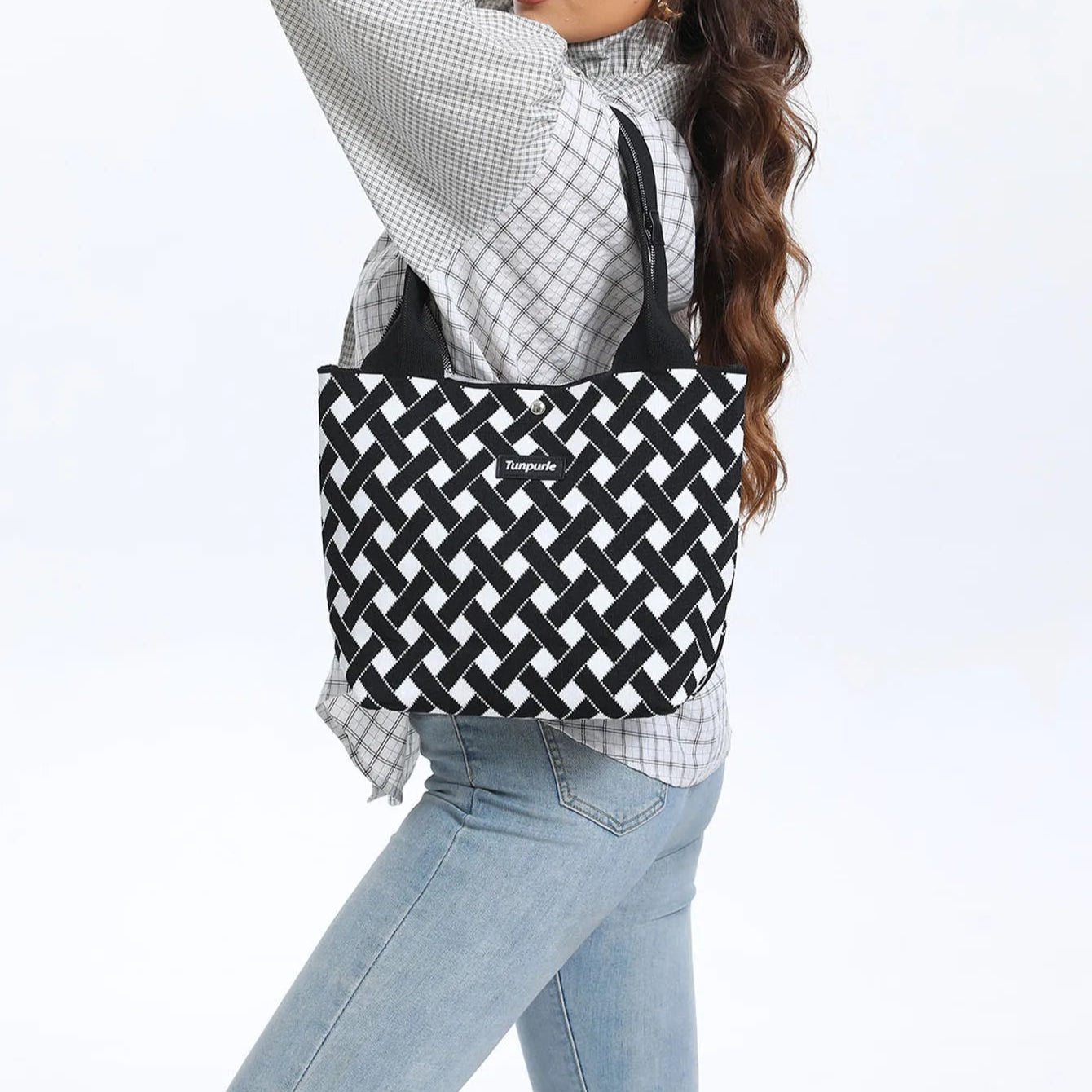Ladies' classic tote bag include a simple, yet elegant black and white design, making it perfect for casual use or as a white-collar commuting bag. Its specifications are highly suitable for day-to-day activities.