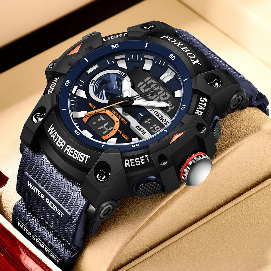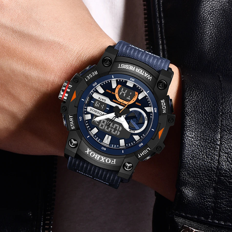 LIGE Fashion Digital Watches for Men Stay in trend. Featuring a top brand, luxury design, this military-inspired watch is waterproof and perfect for sporty and casual occasions. With a dual display, you can easily keep track of both the time and date.