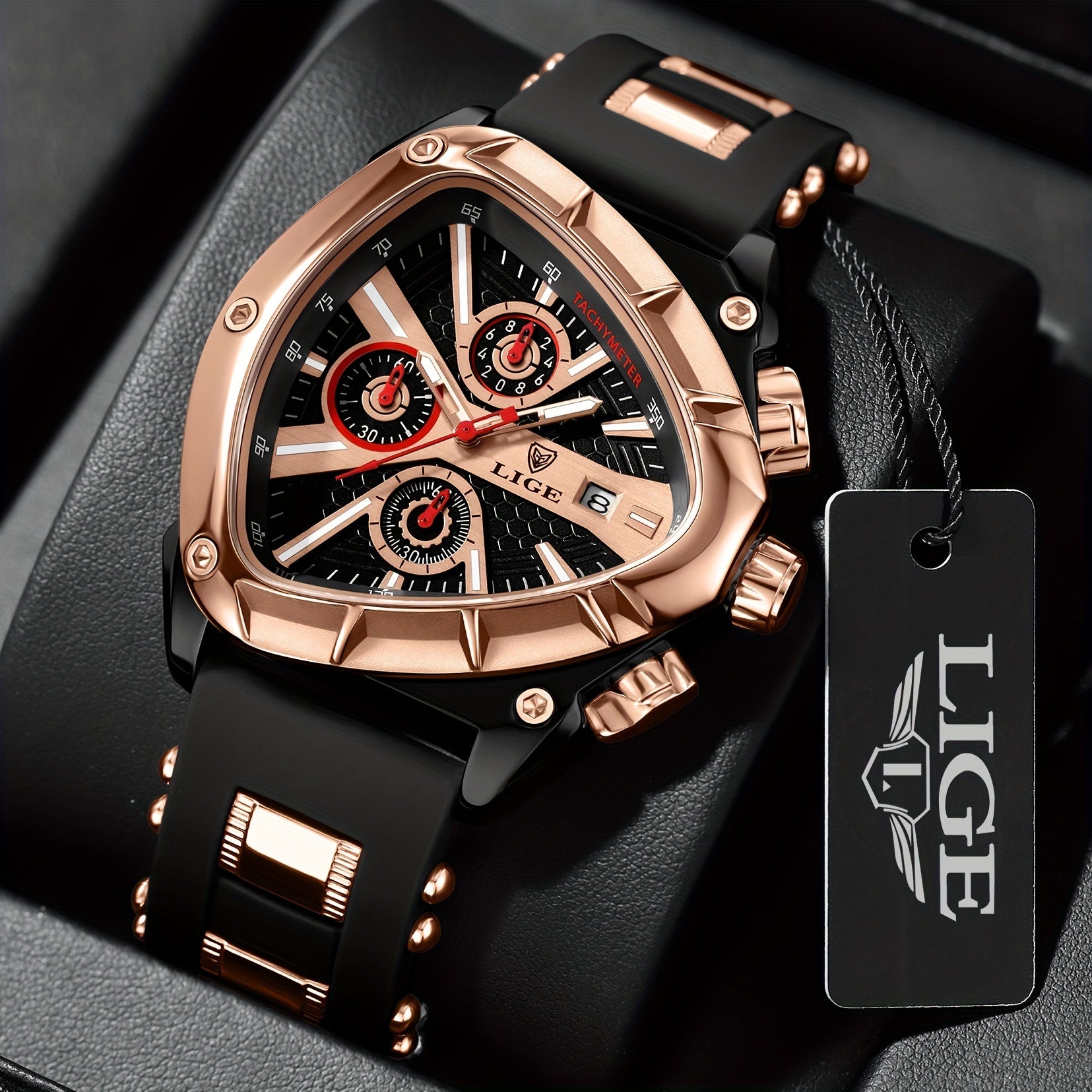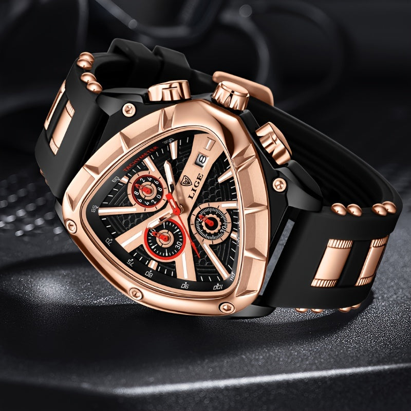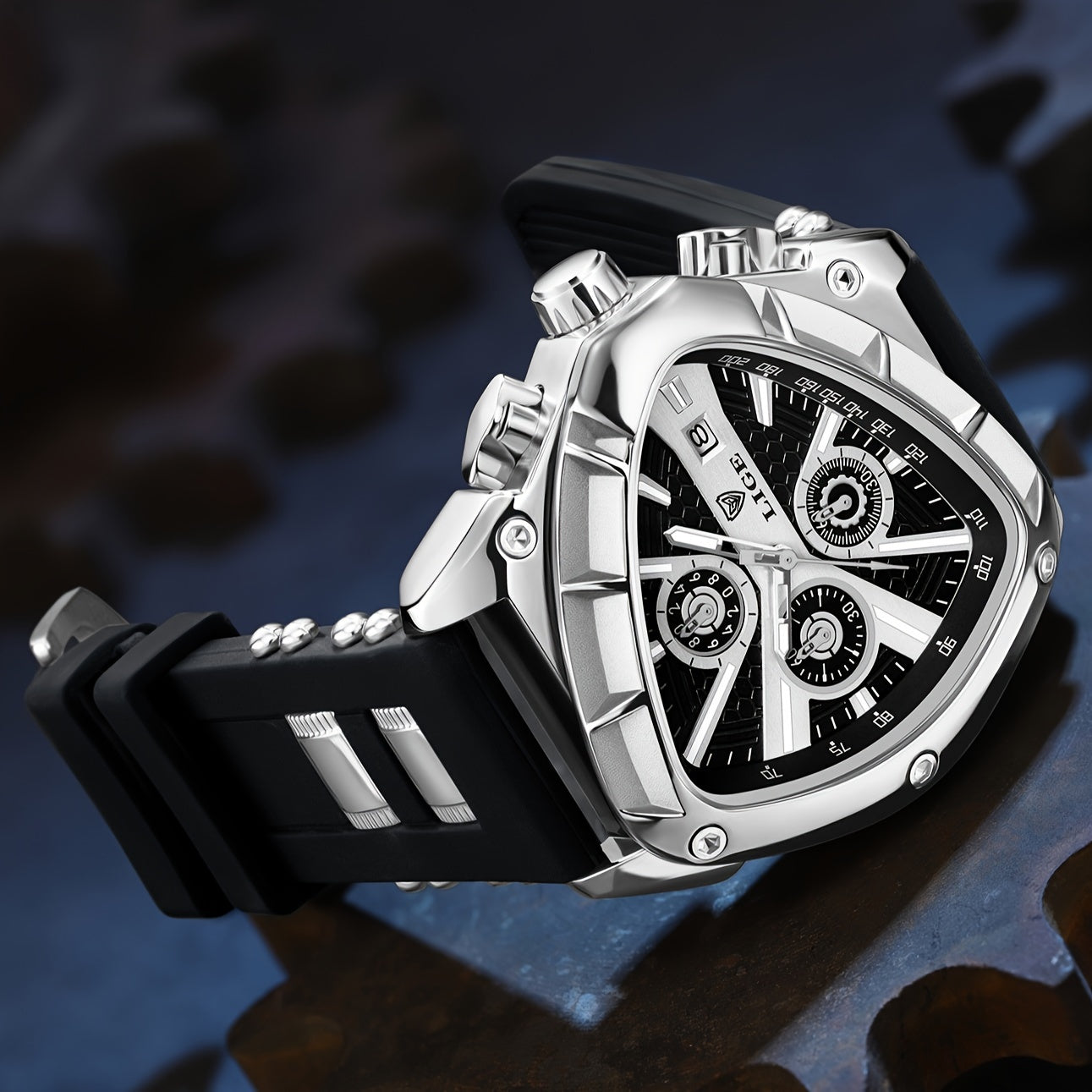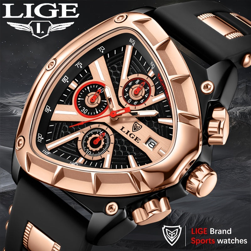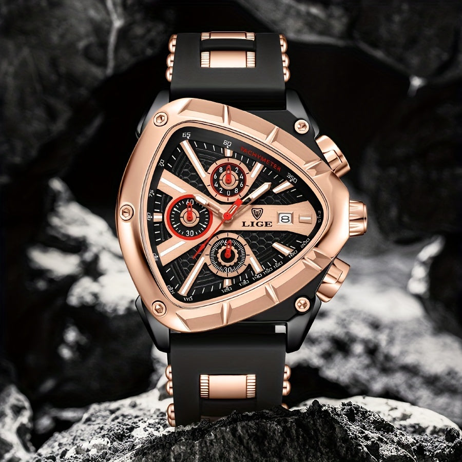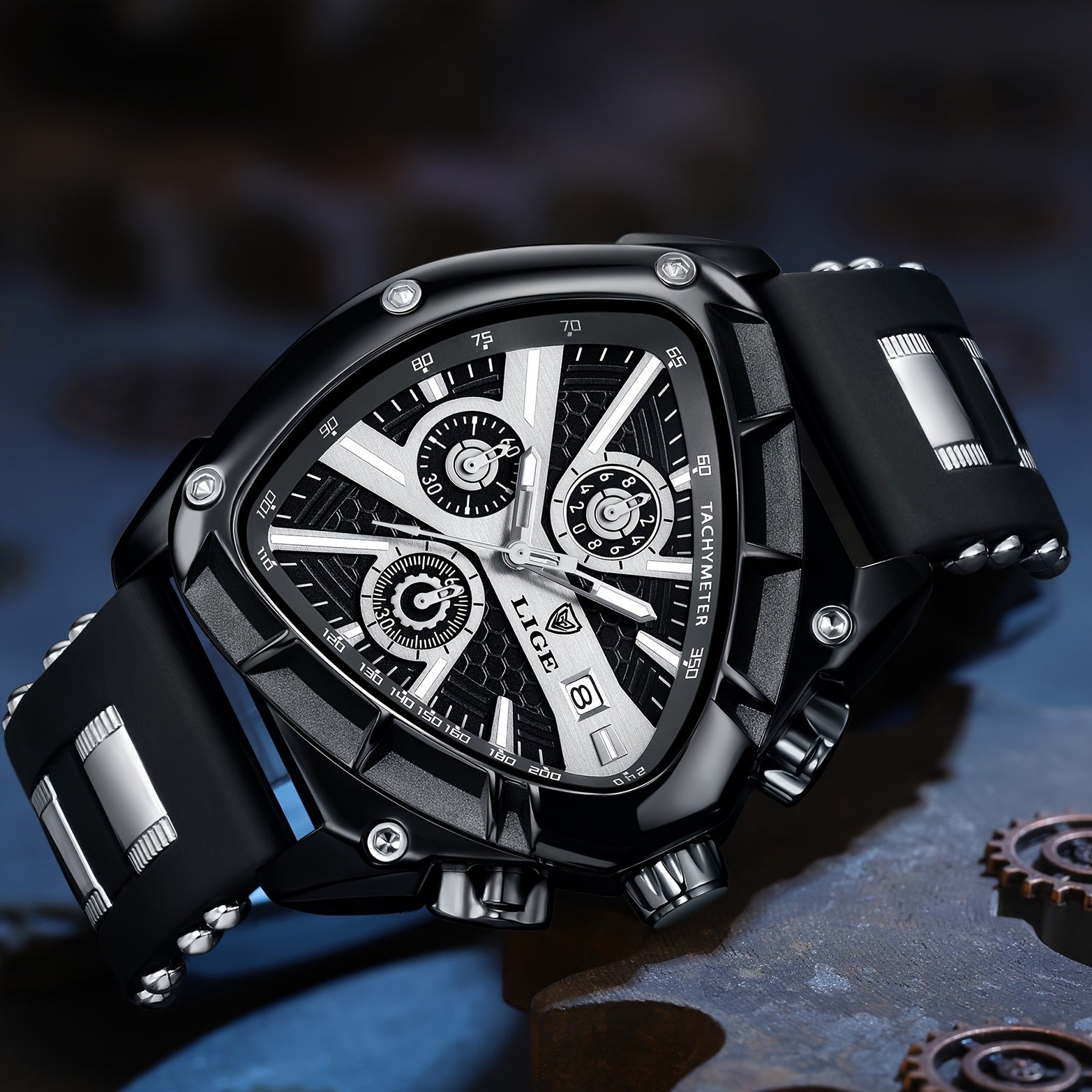 LIGE Polygonal Men's Quartz Watch, Calendar, Multi-functional, Night Light Watch