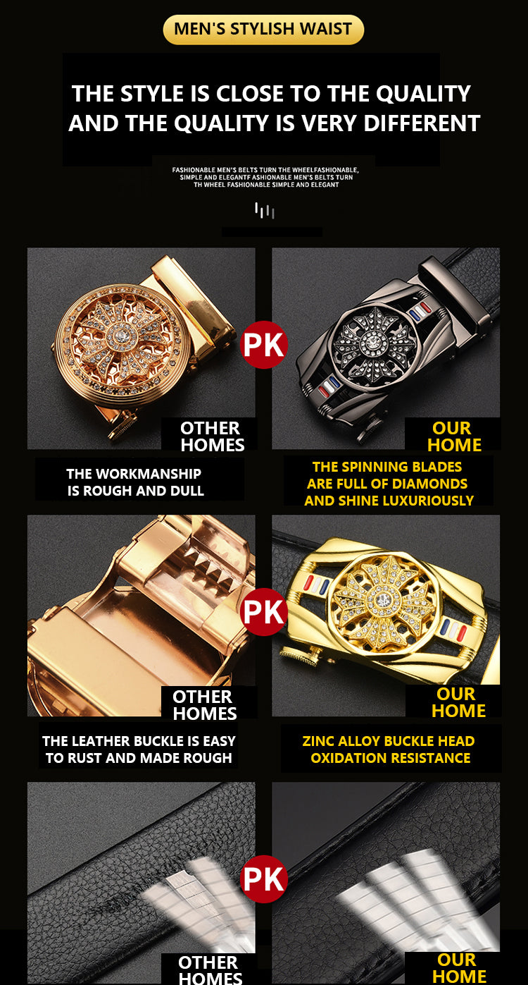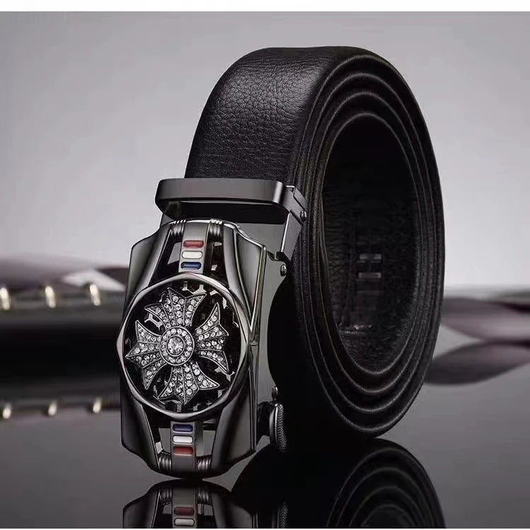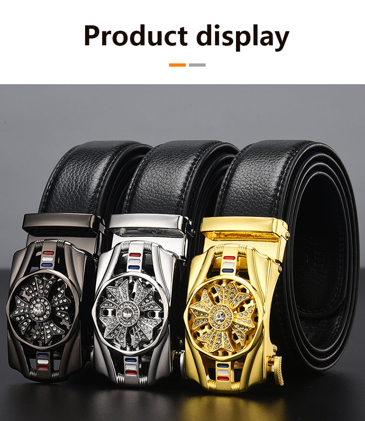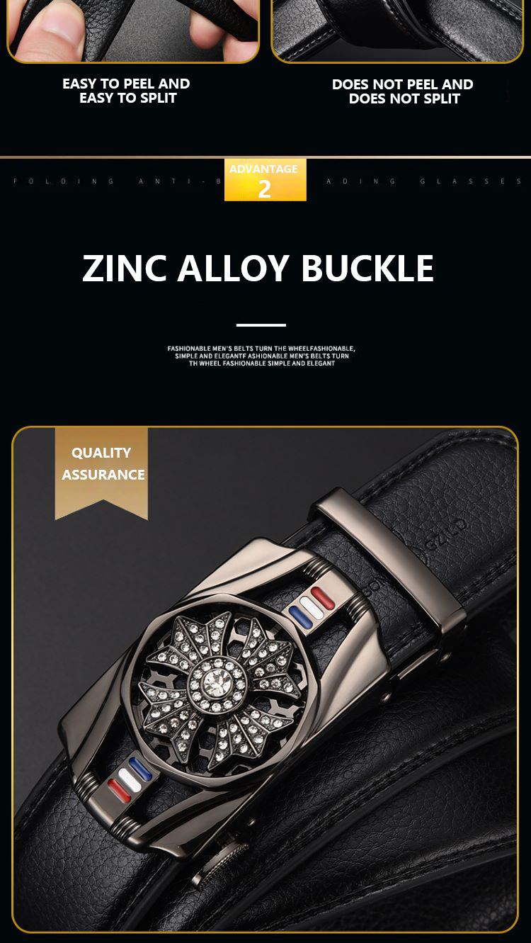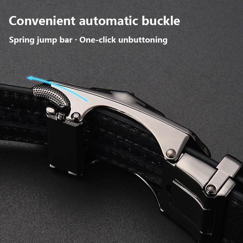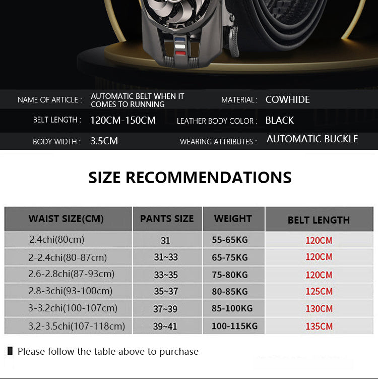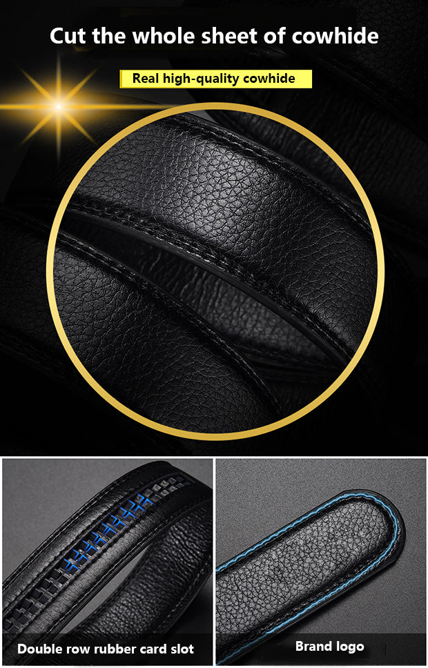 Men Genuine Leather Belt, crafted with high quality materials and featuring a durable metal automatic rotatable buckle for easy adjustment. Elevate your style with this versatile and sleek accessory. Experience the benefits of a comfortable, adjustable, and stylish belt.