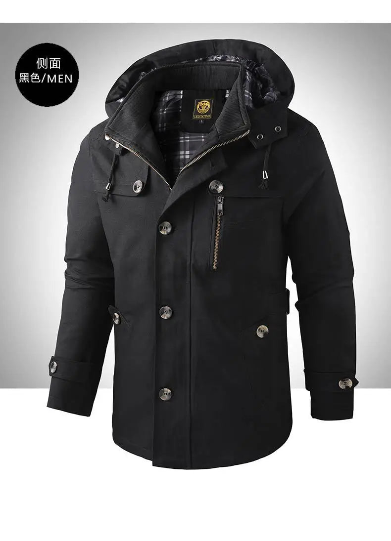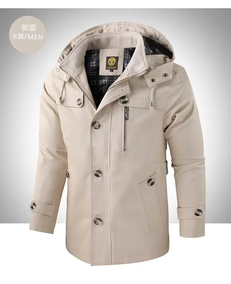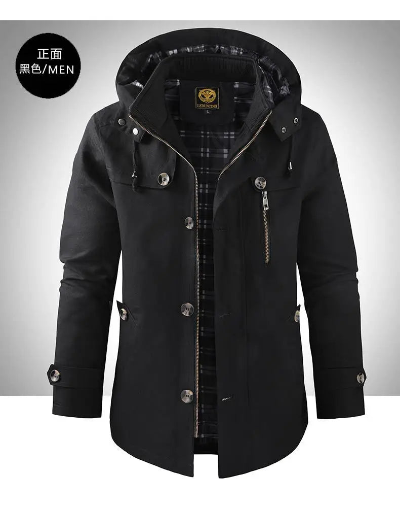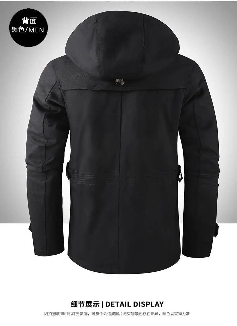 Men Long Jackets Hooded Spring Autumn Casual Trench Coats, made from comfortable and durable cotton. Stay stylish and warm during all seasons with this versatile trench jacket, available in size 5XL. Perfect for any occasion, this jacket is a must-have for any fashion-forward man.