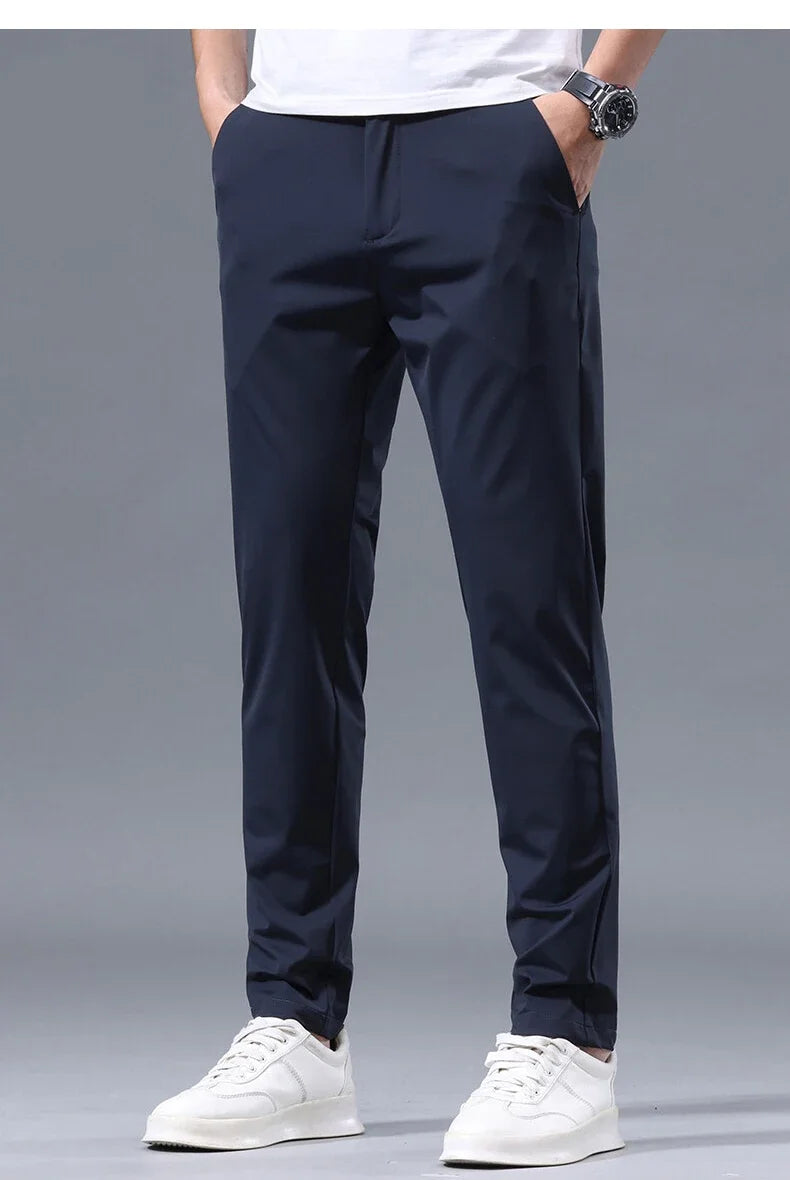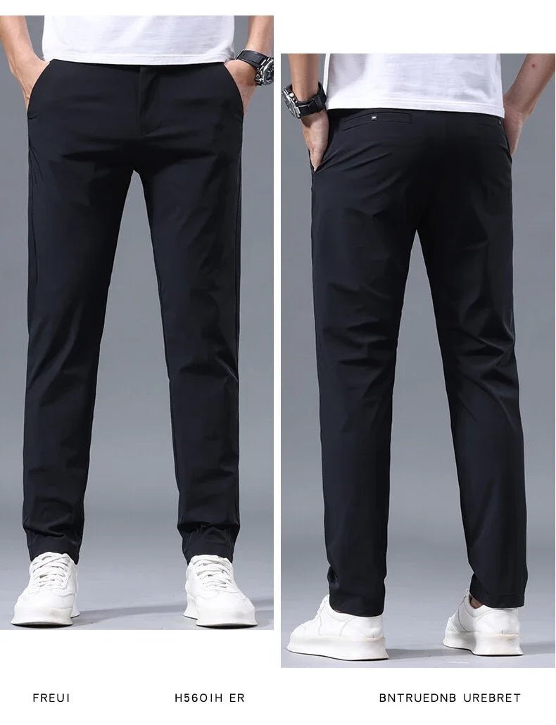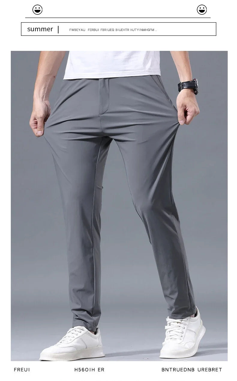 Men Pant Stretch Soft Thin, perfect for both casual and formal wear. Made with a comfortable and flexible elastic waistband, these trousers offer optimal comfort and mobility. The soft, lightweight fabric allows for breathability, keeping you cool and comfortable all day long.